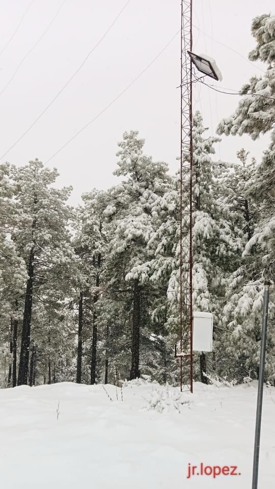 En redes sociales comenzaron a circular imágenes y videos de la nevada que se vivió el día de hoy en el municipio de Madera, Chihuahua, digna de una postal.