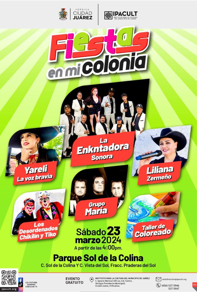 Los asistentes podrán disfrutar de las actuaciones en el escenario de Yareli “La voz bravía”, Los Desordenados, Liliana Zermeño, Grupo María y todo el sabor de la cumbia con la Enkntadora Sonora. Asimismo, se contará con taller de coloreado para las y los infantes.