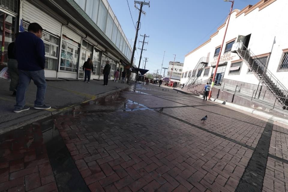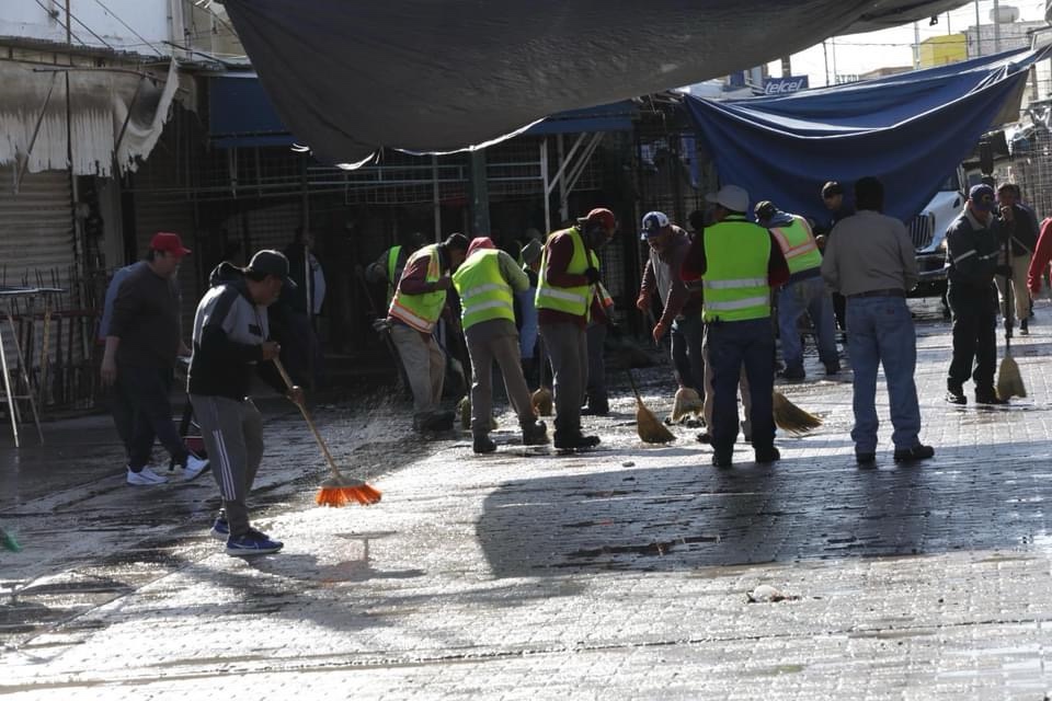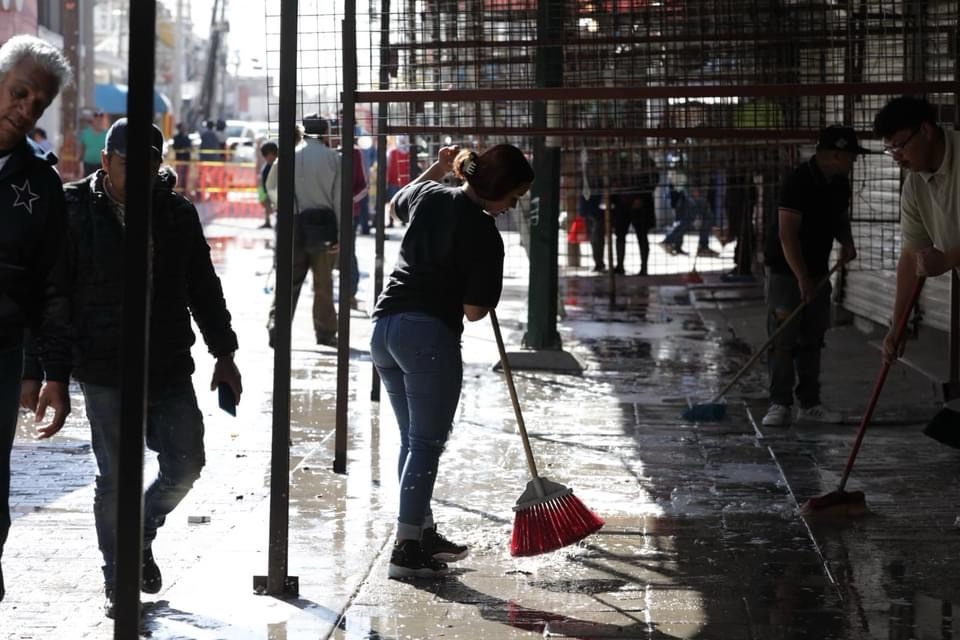 La Dirección de Parques y Jardines facilitó la limpieza con pipas de agua tratada para la limpieza de los corredores peatonales utilizando además escobas y jabón.