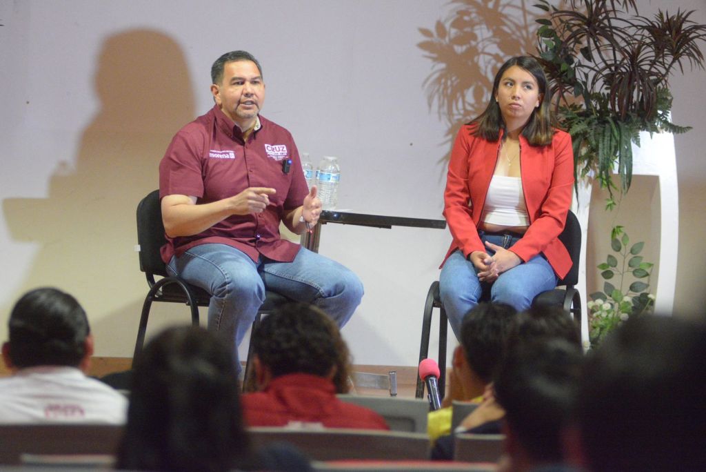 Ciudad Juárez.-Estudiantes del Insituto Tecnológico de Ciudad Juárez y el candidato a la alcaldía municipal, Cruz Pérez Cuéllar, tuvieron un encuentro a través del foro “Propuestas y Visiones”.