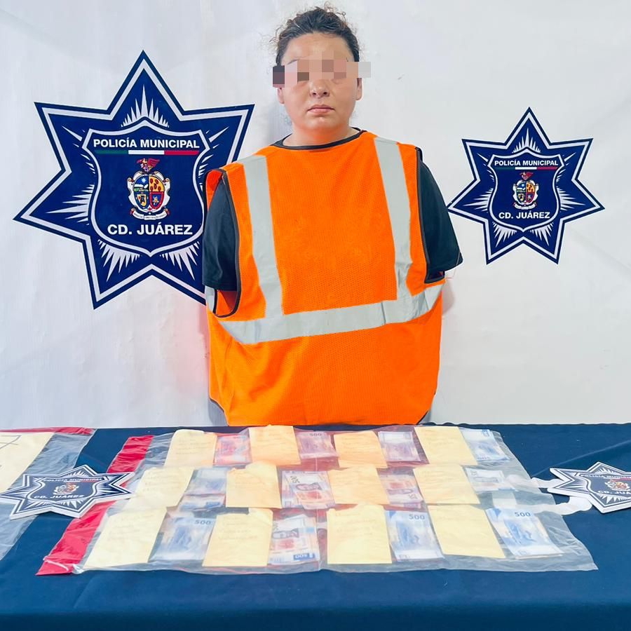 Ciudad Juárez.-Esta tarde, una mujer identificada como Mirta Angélica C. A., de 33 años, fue detenida por elementos municipales al ser sorprendida con varios sobres de dinero que pretendía dar a cambio del voto.