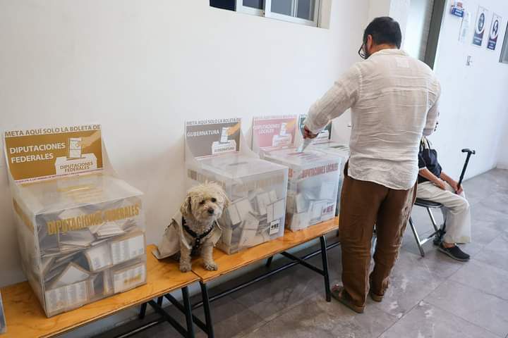 Ciudad Juárez.-En medio de las votaciones en Puebla, una adorable perrita French Poodle de nombre “Daisy” se ha vuelto viral en redes sociales por su papel inusual como funcionaria de casilla.