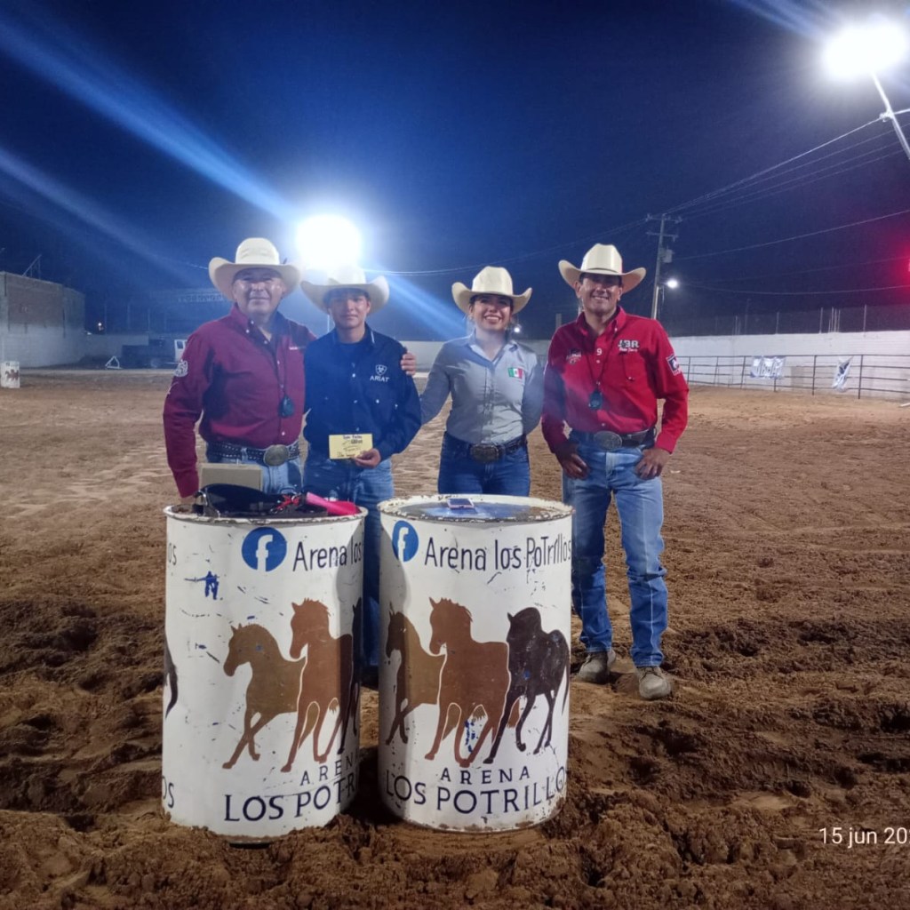 Ciudad Juárez.-La amazona juarense, Melanie García, se posicionó en primer lugar en el Circuito de la National Barrel Horse Association (NBHA) México, Región Juárez, en carreras de barriles a caballo. Este evento se llevó a cabo el fin de semana en la arena Los Potrillos.