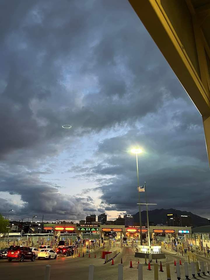 Kenia Cuellar, fue quien compartió en sus redes, las fotos de las luces extrañas que se miraron está mañana, justo cuando estaba por cruzar el puente hacia la ciudad de El Paso.