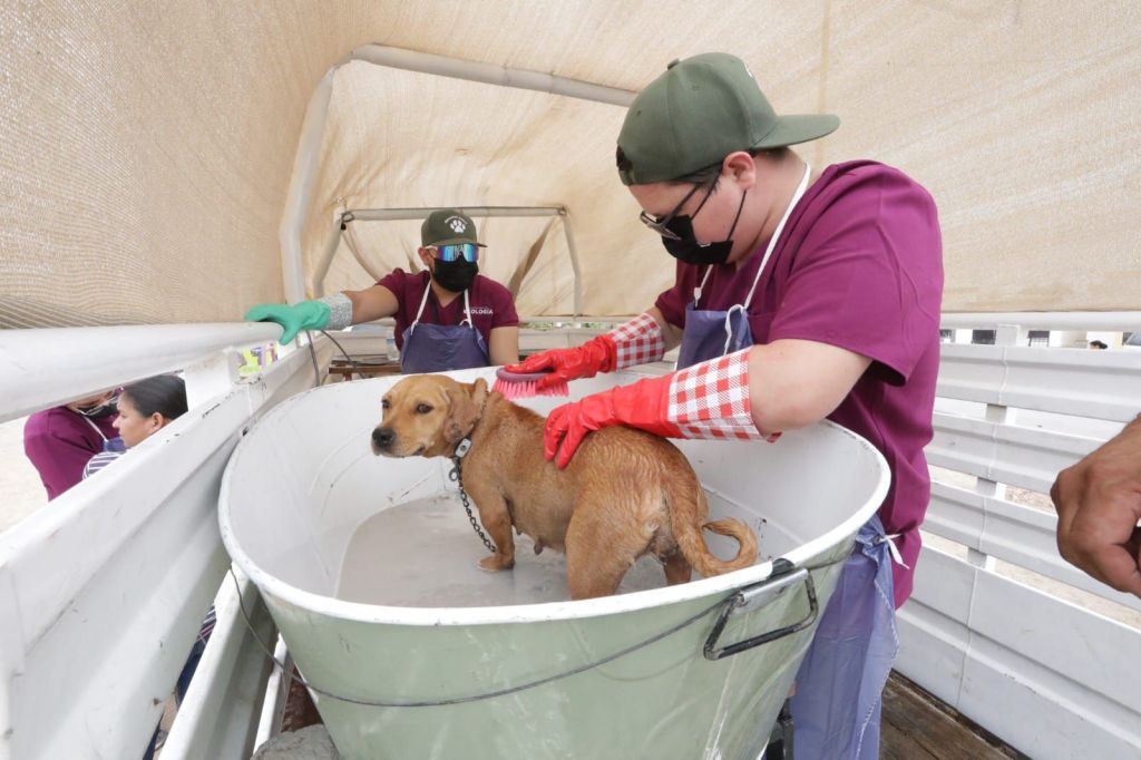 Los baños son rápidos y no requieren secado posterior, por lo que se atendieron tanto a perros domésticos como a los que se encuentran abandonados en las calles.