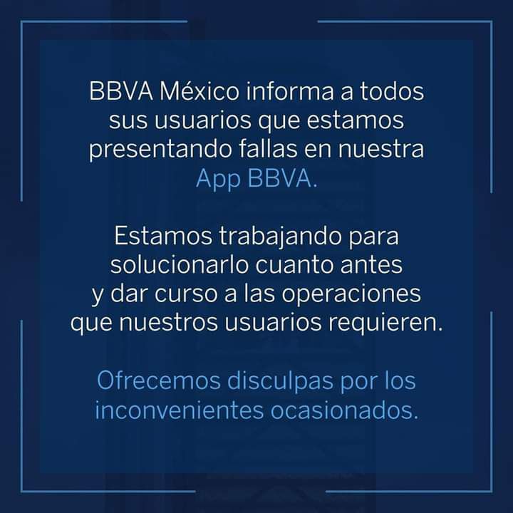 La aplicación de banco de BBVA México está presentando fallas, de acuerdo con los reportes que pueden leer en su cuentas oficiales.