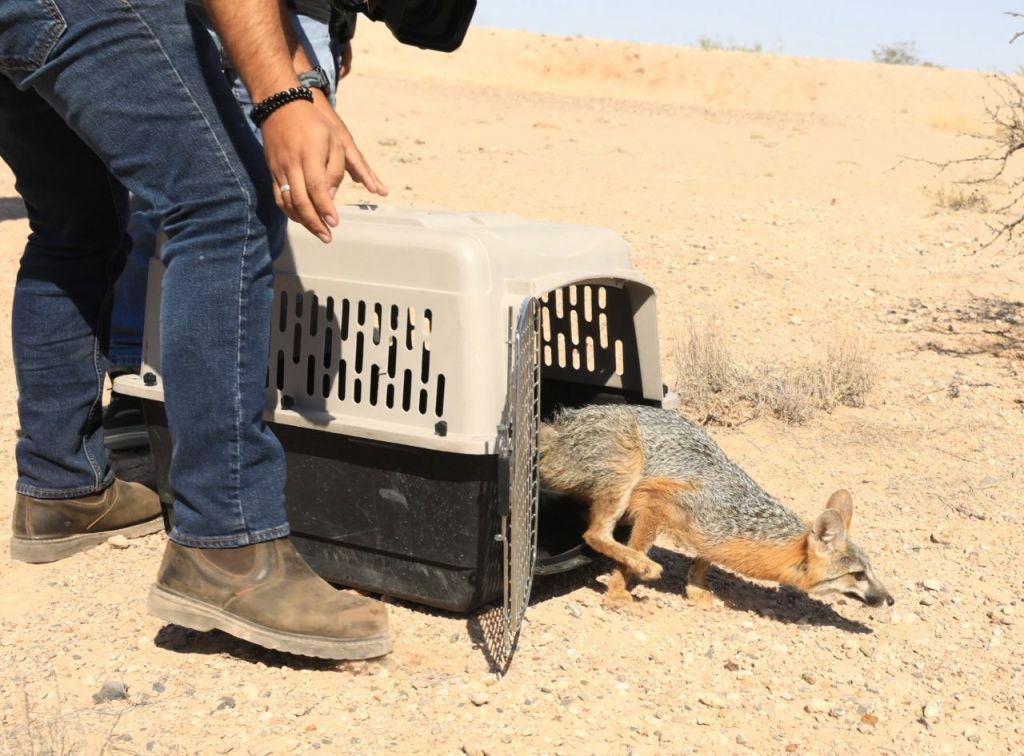 Está mañana personal de la Dirección de Ecología liberó a un zorro en el desierto de Juárez, luego de haber sido rescatado en las cercanías del puente libre, hace 10 días.