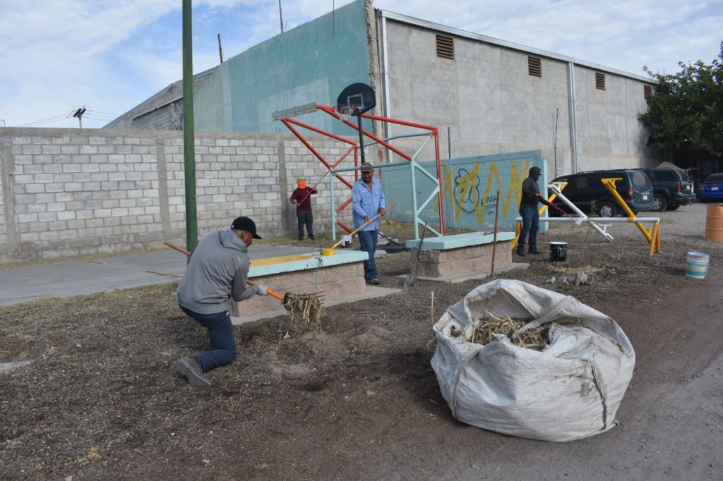 Una cuadrilla de la Dirección de Parque y Jardines Como realizaron el corte de maleza, poda formativa de los árboles y se recogió la basura , además de reparar los juegos infantiles y el mobiliario, para enseguida pintarlos.