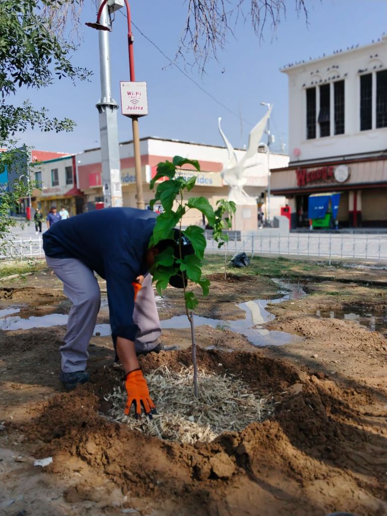 Personal de la Dirección de Parques y Jardines trabajó este viernes en la plantación de 12 árboles en las jardineras de la Plaza de Armas, ubicada entre las avenidas Vicente Guerrero y 16 de Septiembre, dio a conocer Daniel Iván Zamarrón Saldaña, titular de la dependencia.