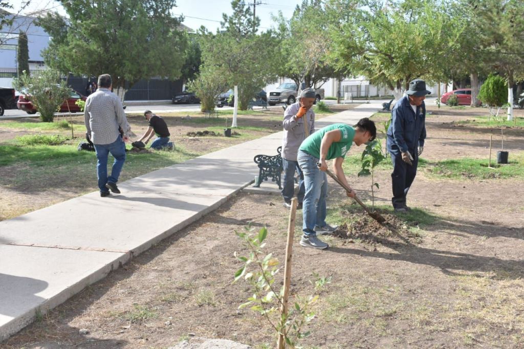 La Dirección de Parques y Jardines, en colaboración con el diputado federal electo, Alejandro Pérez Cuéllar, reforestó el parque Melquiades Alanís, ubicado en la calle Sócrates de la colonia Monumental.