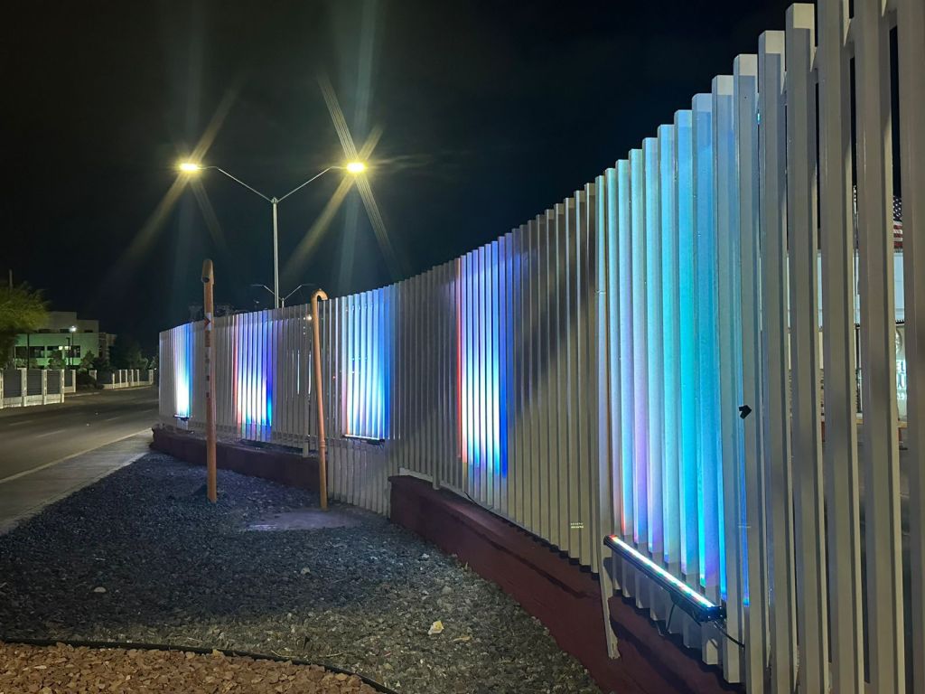 Durante la noche de ayer la Dirección General de Obras Públicas, hizo pruebas de la iluminación que estará sobre el barandal lineal con distintos colores.