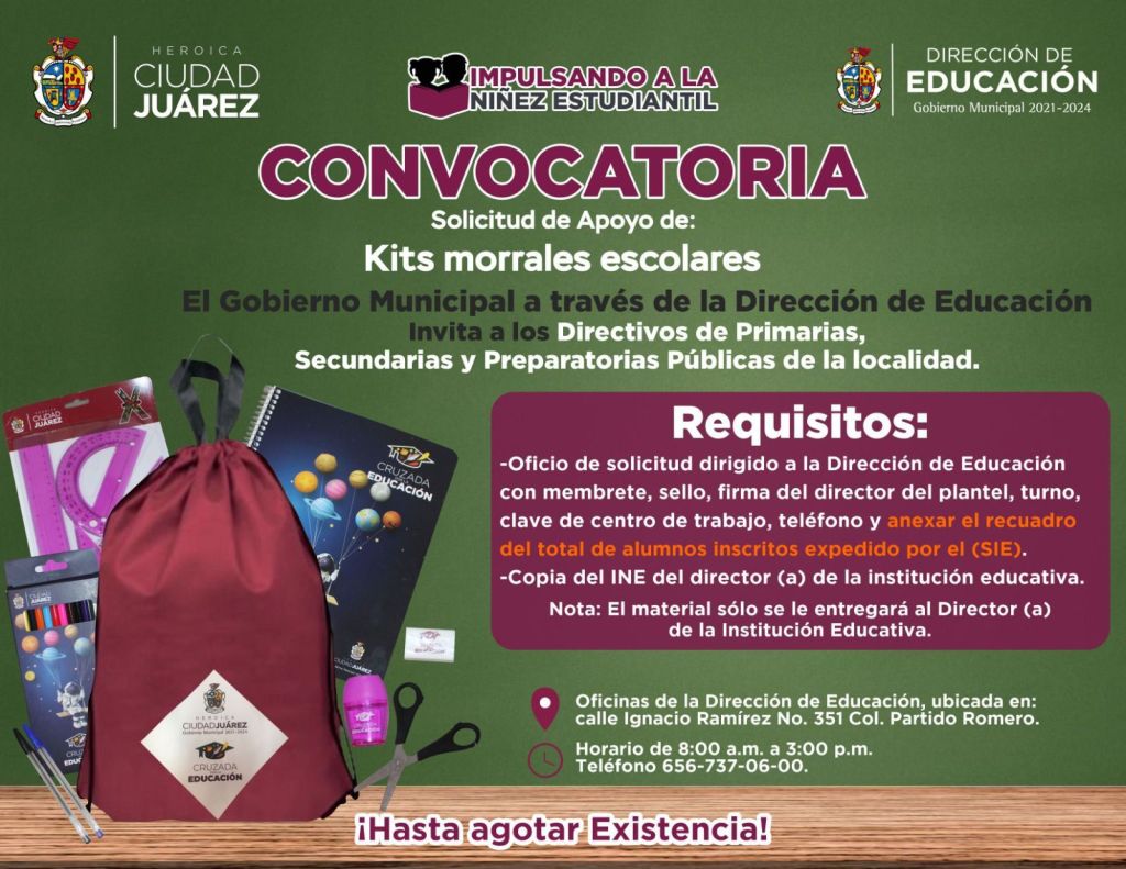 Los directivos de primarias, secundarias y preparatorias públicas de Ciudad Juárez podrán solicitar kits de morrales, libretas y otros útiles escolares para sus alumnos.