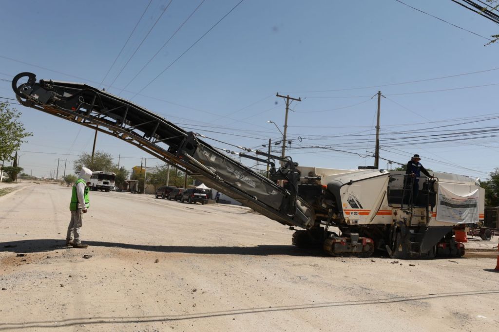 Serán 5,546 metros cuadrados de superficie que se atenderán desde la avenida Las Maravillas hasta Naciones Unidas, en la colonia Las Almeras, donde primero se hará el proceso de trituración de material existente en uno de los tramos, para posteriormente generar firmeza con una mezcla de base y cemento y usar la motoconformadora para nivelar la vialidad.