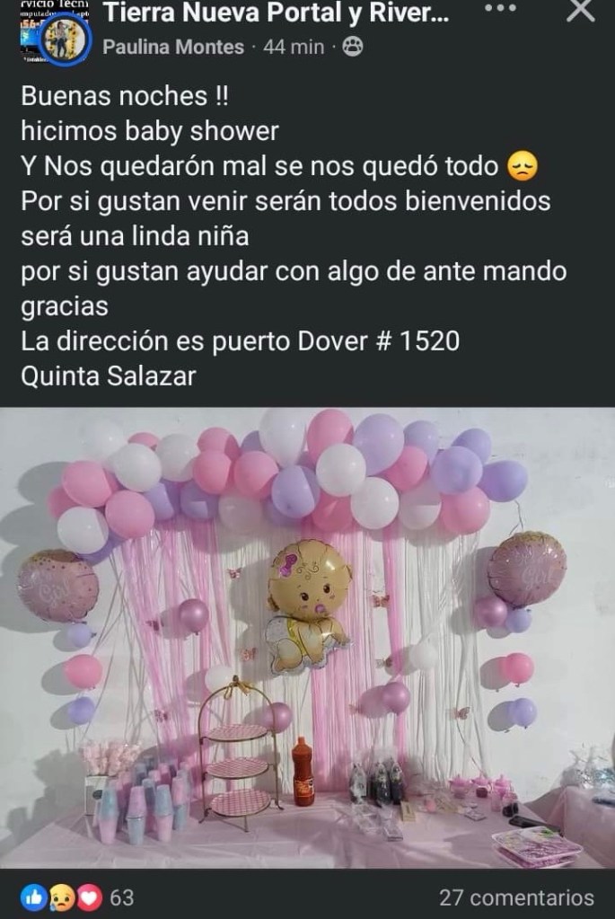 Ellos quieren regalarle un rato agradable a la mami y una bienvenida digna a la bebé, aparte de que hay antojitos y comida para asistentes; ellos están en la calle Puerto Dover #1520 en Quinta Salazar. Ya si quieren llevar un detalle es más que agradecido.