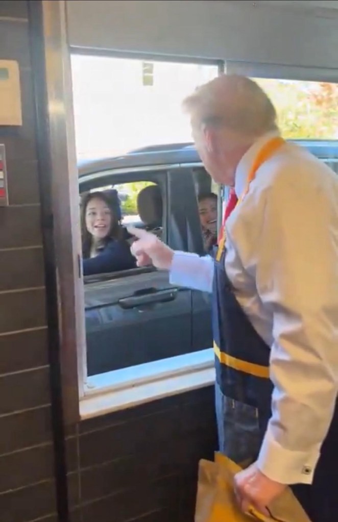 Trump se presento para su turno en McDonalds e inmediatamente comienzo a trabajar en la freidora y a despachar algunos clientes.