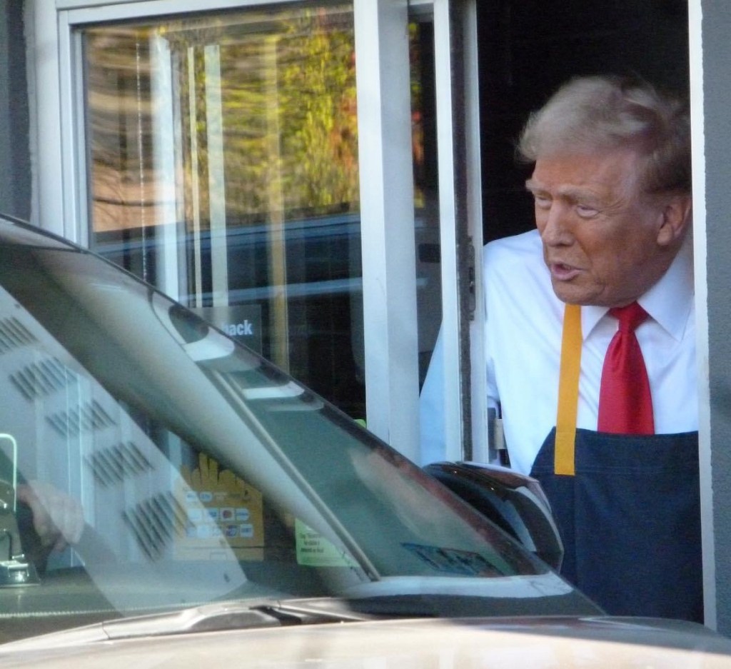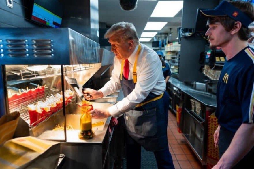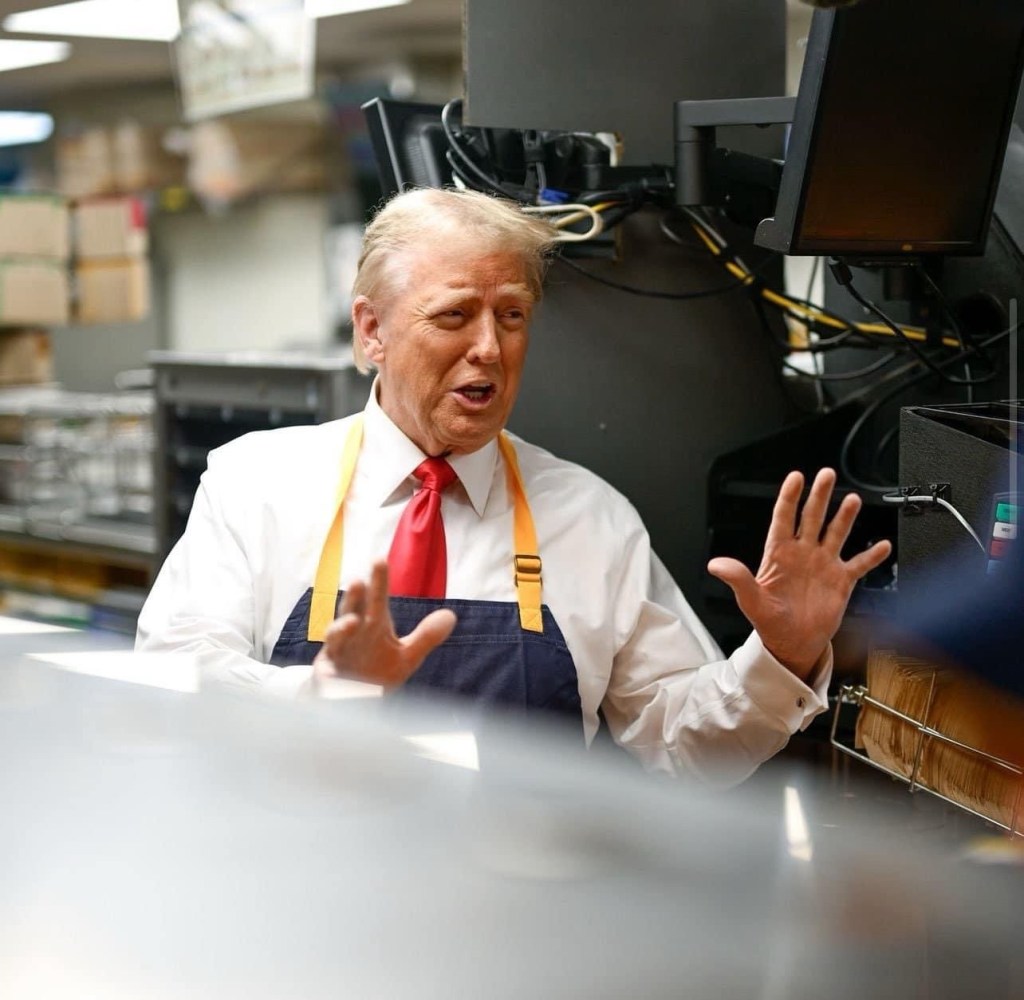 Como parte de su estrategia de campaña que inicia la recta final en los Estados Unidos, Donald Trump llegó al McDonalds en Pensilvania, se puso el delantal e inmediatamente se puso a trabajar.