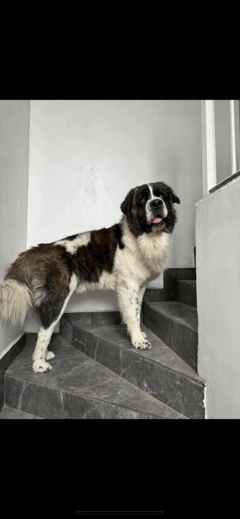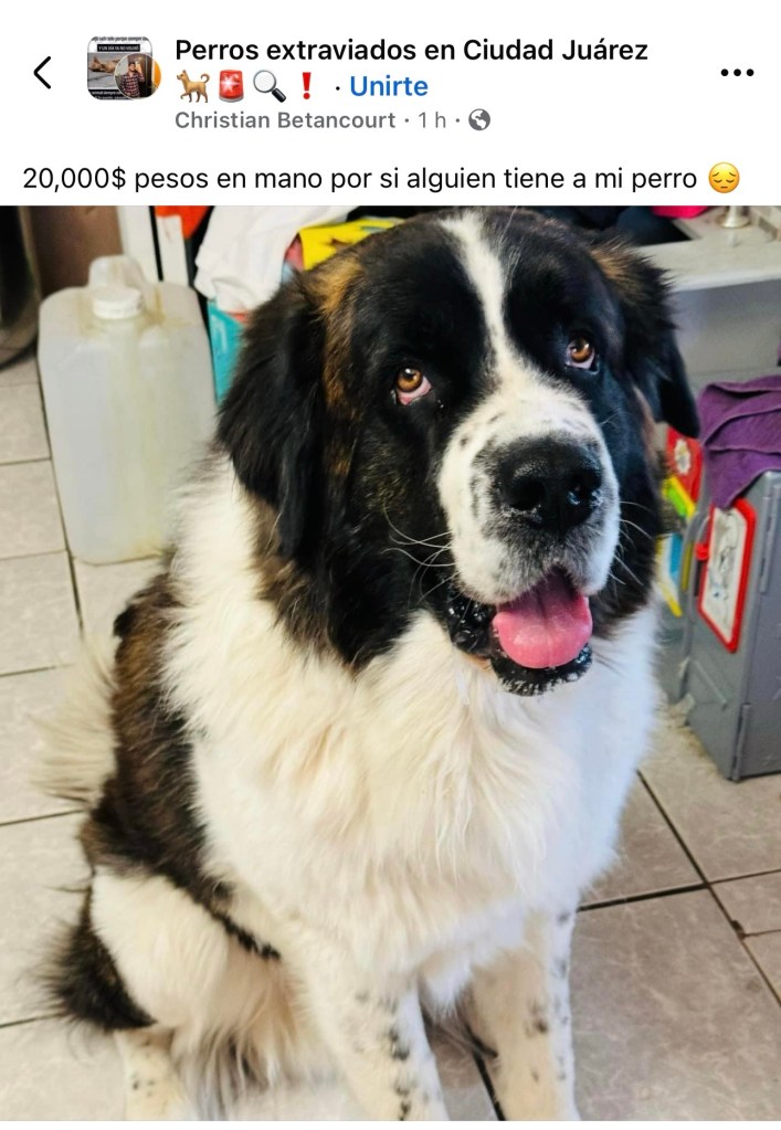 Matías, un perrito de raza san bernardo se extravió el 7 de octubre en El Paso, Texas, cerca de Santa Rosalía.