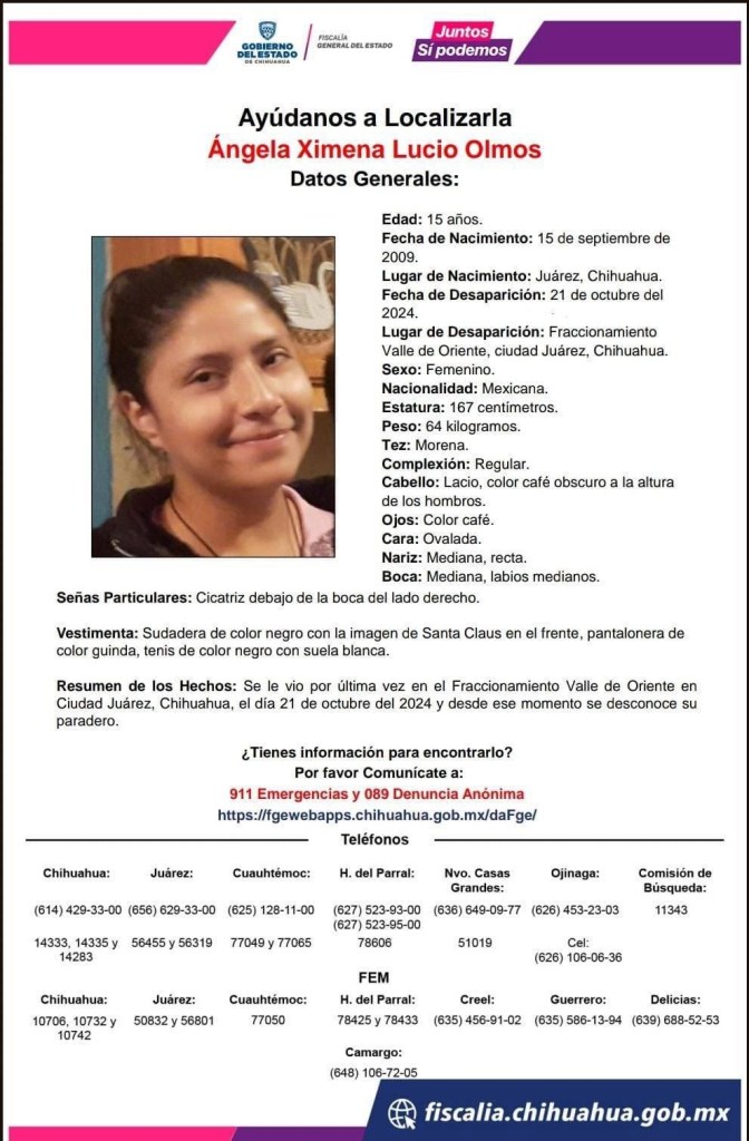 Ángela Ximena Lucio Olmos de 15 años, lleva desaparecida desde el 21 de octubre, causando un gran dolor y desesperación en su familia y amigos.