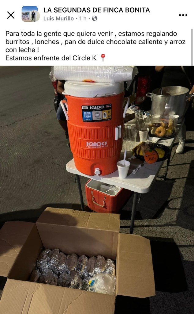 Solo porque si y de manera desinteresada, este grupo de juarenses se pusieron a entregar pan dulce, lonches, burritos, chocolate y arroz con leche a vecinos de la colonia Finca Bonita y colonias cercanas.