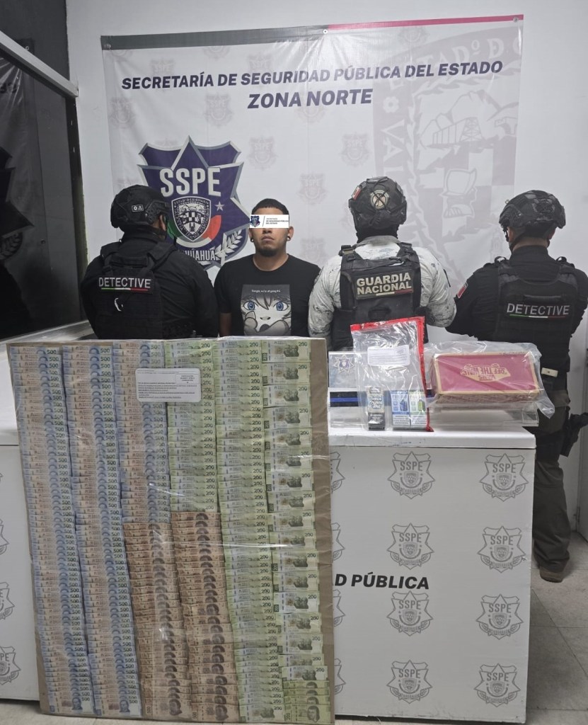 Elementos del Grupo Especial de Detectives de la SSPE y Guardia Nacional detuvieron a un hombre en Ciudad Juárez por presunta venta clandestina de bebidas.