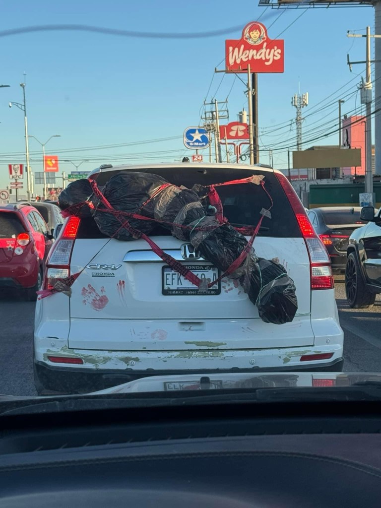 Este año, juarenses transformaron vehículos en escenas de terror, con ataúdes rodantes, esqueletos y fantasmas, que sin duda le sacaron un susto a más de un despistado 👻