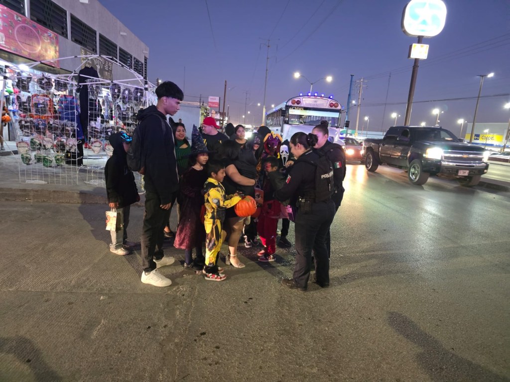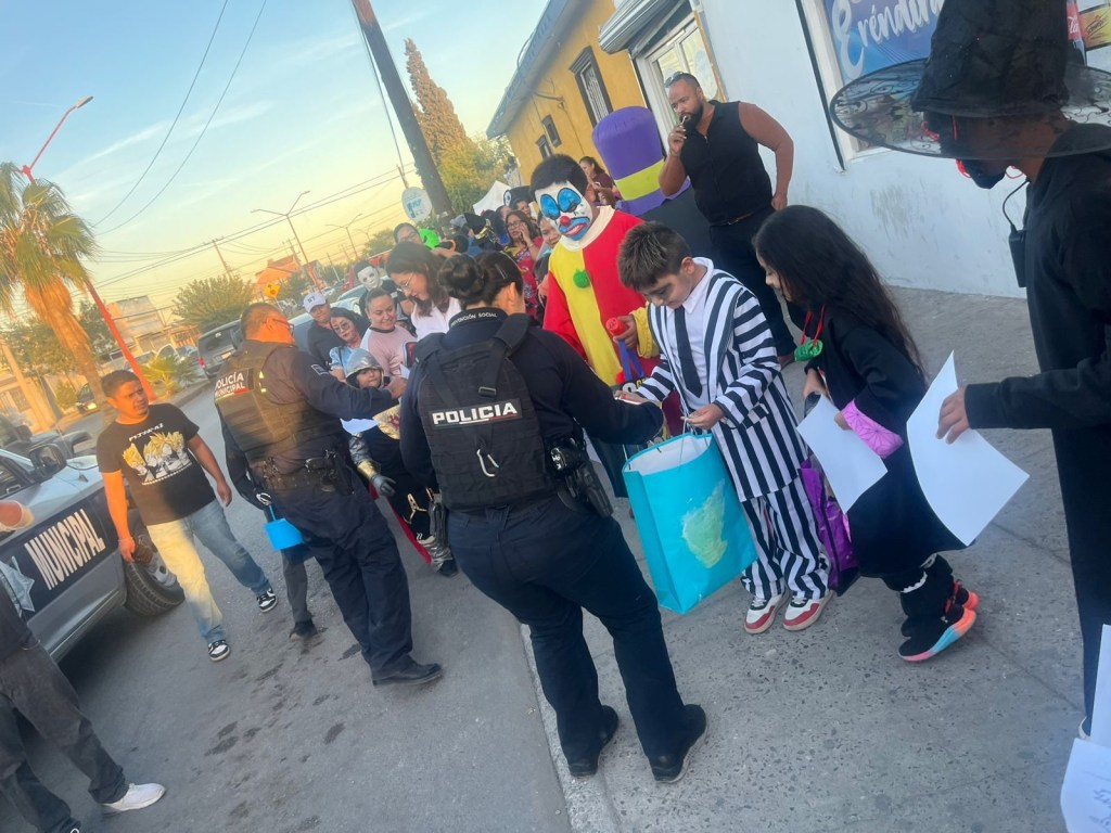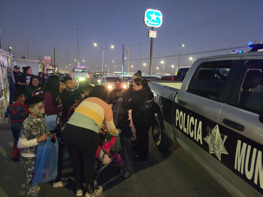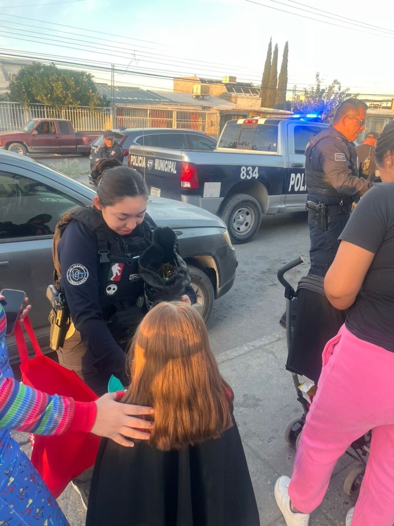 Con gran dedicación, agentes preventivos municipales de la Dirección de Prevención Social recorren las calles esta tarde, cuidando a las familias y compartiendo dulces con los niños. Estos pequeños gestos llenan de alegría la noche, mostrando el compromiso y calidez de quienes velan por nuestra seguridad.