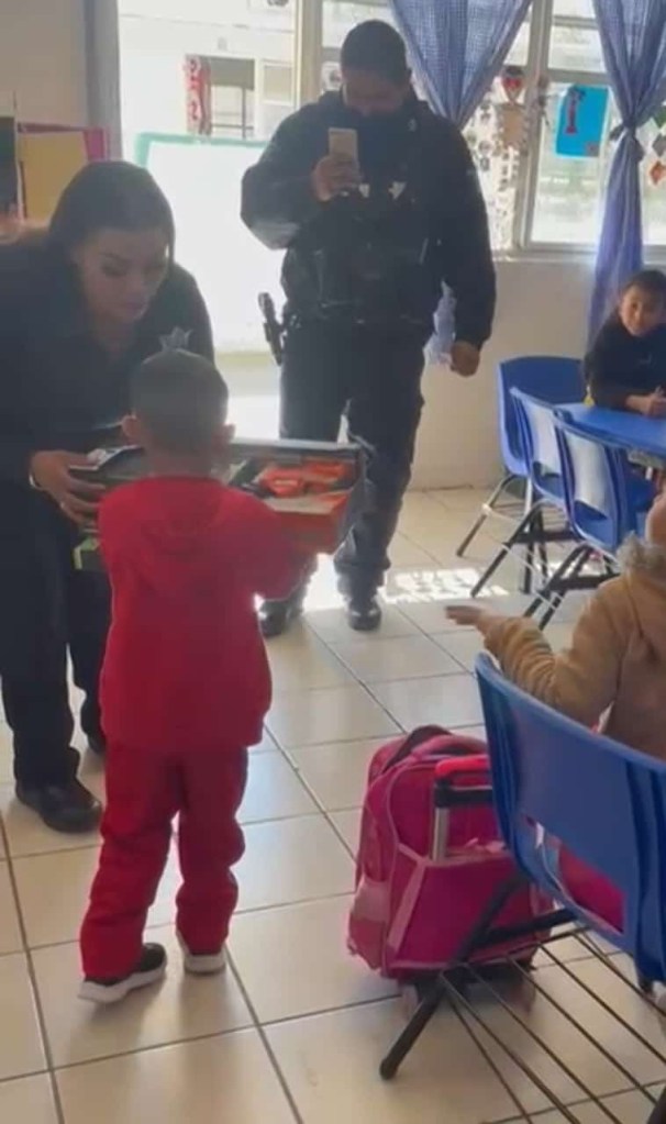 En su cumpleaños, policías municipales sorprendieron a Isaac y a sus amigos, visitando su salón de clases y haciendo realidad su deseo.