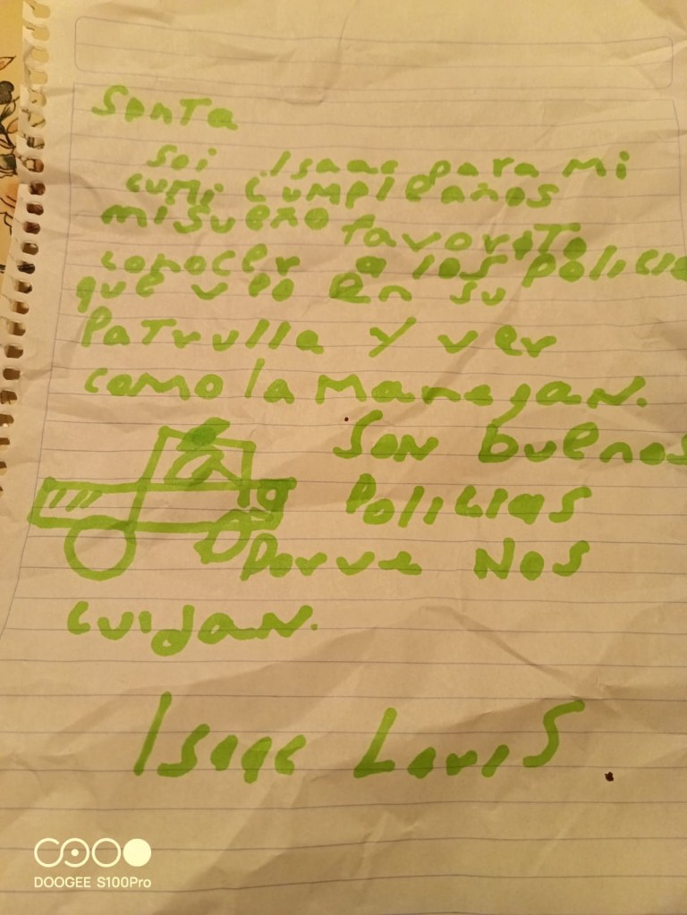 La abuelita de Isaac había llevado su carta de Navidad a la estación, donde pedía conocer a los policías que tanto admiraba.