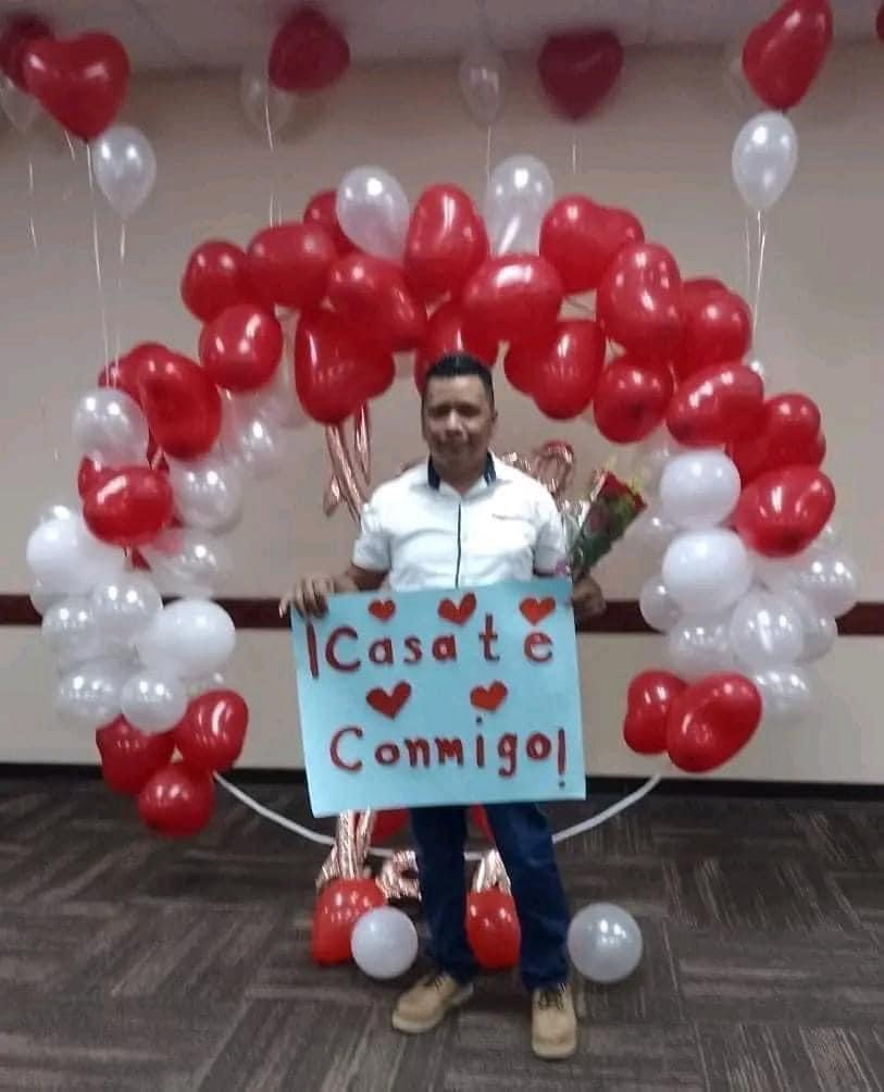 Con globos, un cartel y el apoyo del departamento de recursos humanos, sellaron su compromiso.