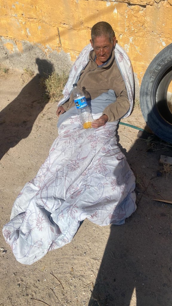 Buenas tardes,encontré a este señor aquí por la Benito Juárez estaba tirado en unas piedras, por si alguien sabe de el,o sus familiares porfavor ayúdenme a venir por el ,le puse una cobija,tenis por que andaba descalzo y le di de comer que tenía mucha hambre,me está diciendo que vive en un puesto azul de comida que si tiene familiares,ayúdenme a encontrar a sus familiares