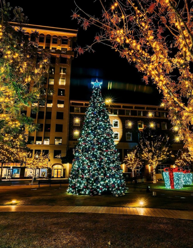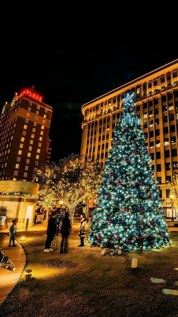 La Plaza San Jacinto será el corazón navideño con un majestuoso árbol de 55 pies, pista de hielo y cálidos momentos en familia.