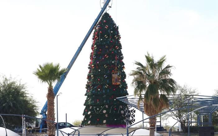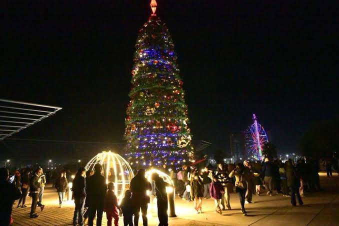 La inauguración será el 5 de diciembre a las 6 pm con el encendido de un árbol navideño de 27 metros, presidido por la Gobernadora Maru Campos. También habrá un recorrido navideño, zanqueros y un trineos para fotos.
