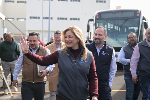 La gobernadora Maru Campos puso en marcha el sistema completo del JuárezBus, con la operación de las tres líneas de transporte.
