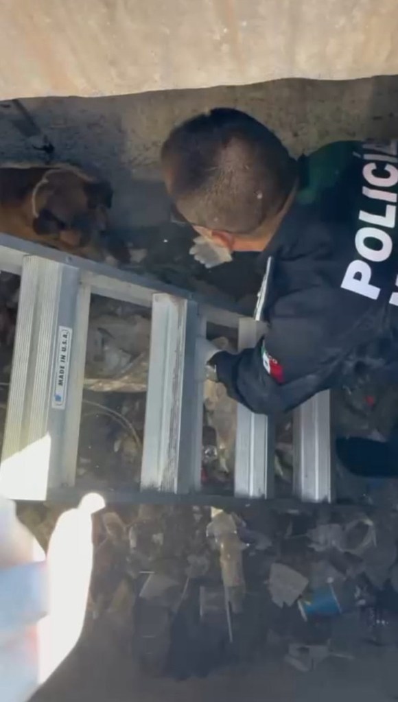 Agentes municipales rescataron a un perro atrapado en una alcantarilla ubicada en la colonia Galeana el 20 de mayo.