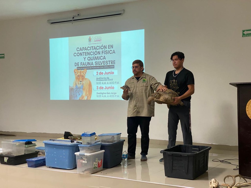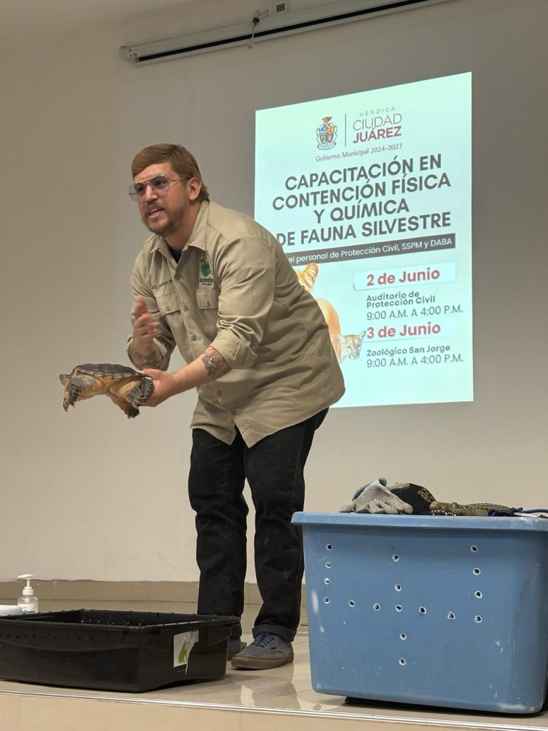 Personal de Protección Civil, Policía, Bomberos y Bienestar Animal de Cd. Juárez recibió capacitación sobre manejo seguro de animales silvestres en zonas urbanas.