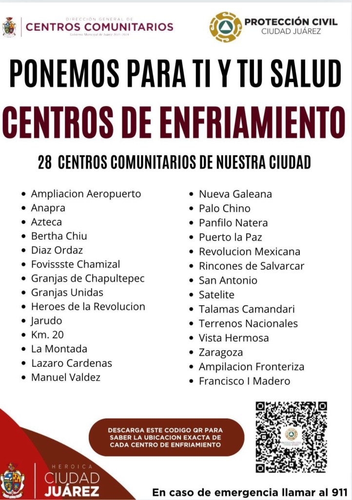 La Dirección de Centros Comunitarios mantiene abiertas 28 zonas de enfriamiento ante el calor extremo en Ciudad Juárez.