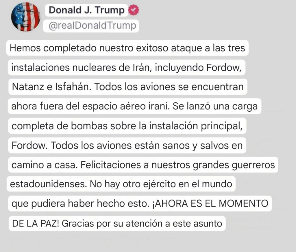 Donald Trump anunció que Estados Unidos bombardeó tres instalaciones nucleares en Irán: Fordow, Natanz e Isfahán.