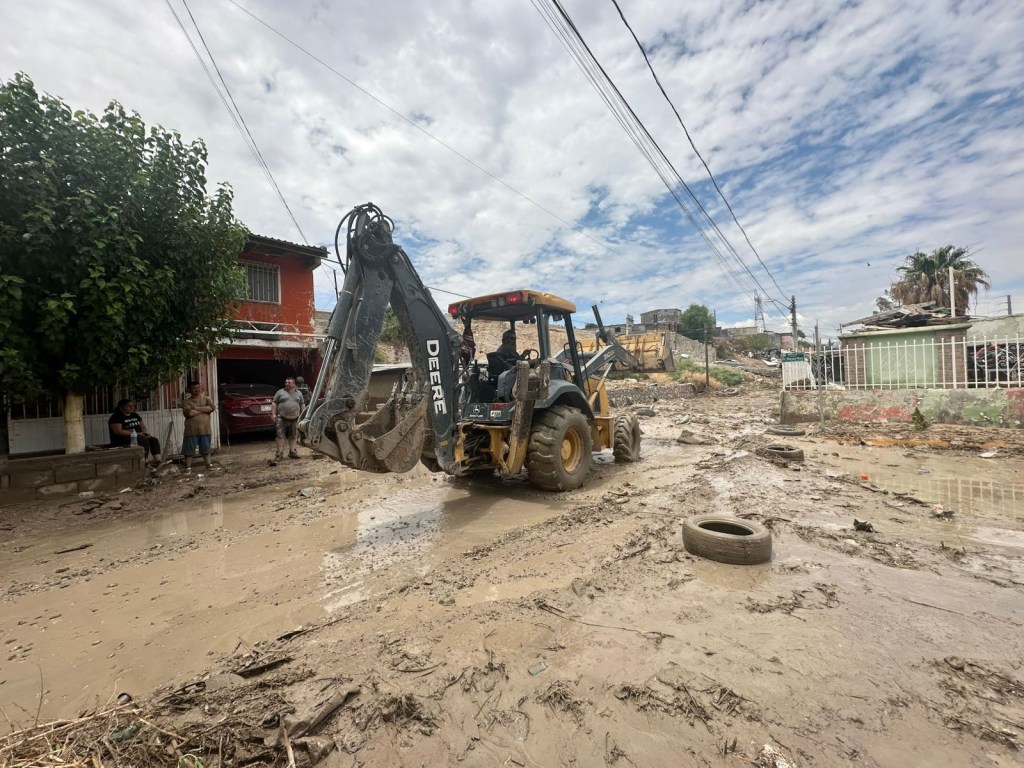 Las acciones se concentran en la colonia Fronteriza, en las calles Loreto y Dr. Manuel Ruíz, donde hubo gran arrastre de lodo.