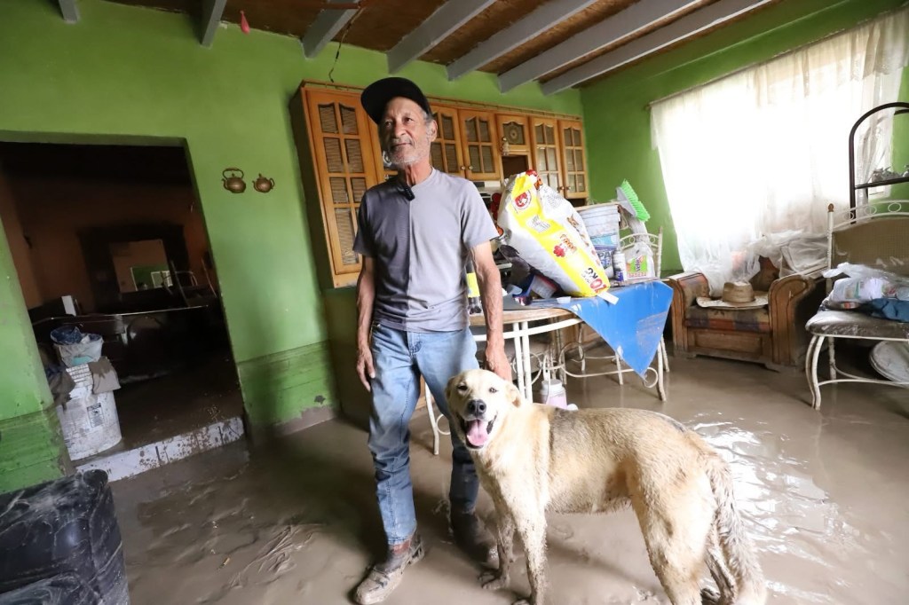 Durante las recientes lluvias en la colonia Fronteriza Baja, en Cd. Juárez, Javier Valle fue despertado por su perrita cuando el agua entró a su casa.