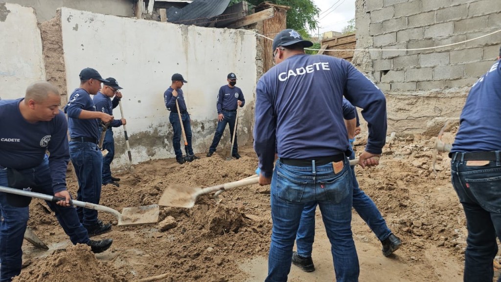 Cincuenta cadetes llegaron a la colonia Francisco Sarabia, donde ayudaron a cuatro familias que perdieron muebles y pertenencias durante la emergencia.