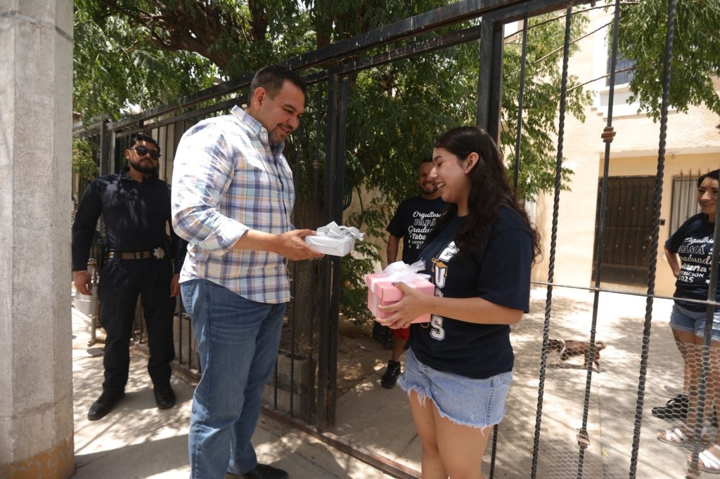 El alcalde de Cd. Juárez, Cruz Pérez Cuéllar visitó a Tábatha, quien celebró sus quince años y su graduación de secundaria con su familia.