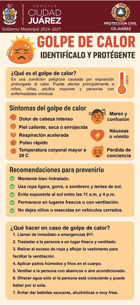 Este 25 de julio se espera una temperatura máxima de 37 grados y mínima de 23 grados en Ciudad Juárez, con bajo riesgo de lluvia.