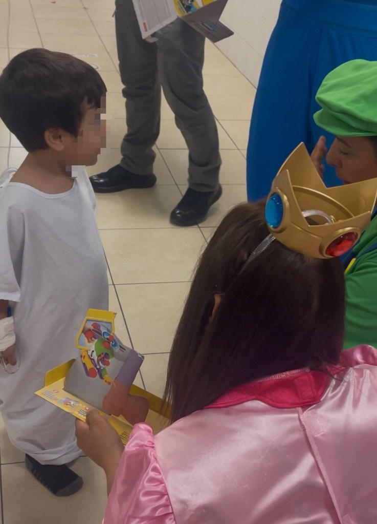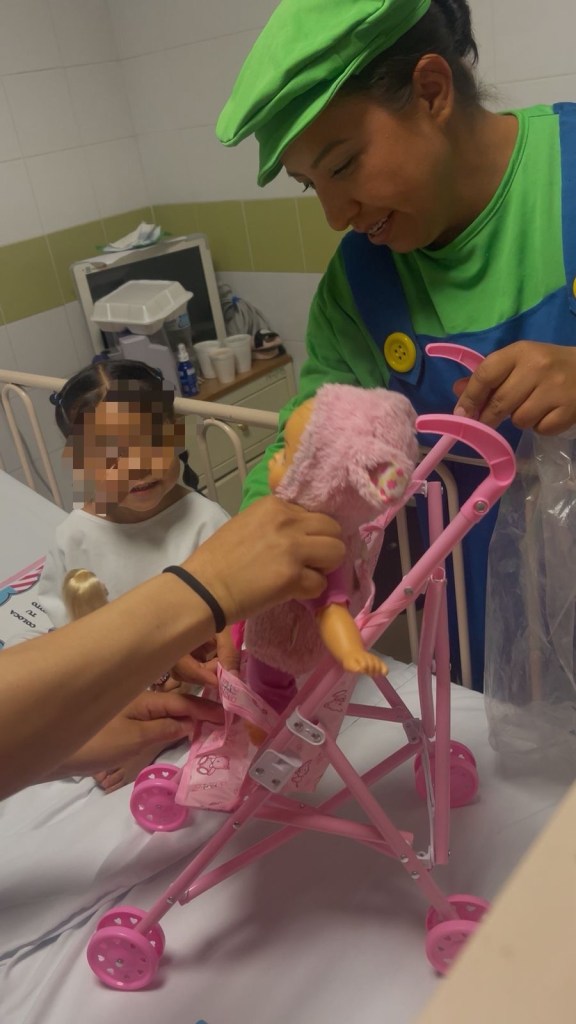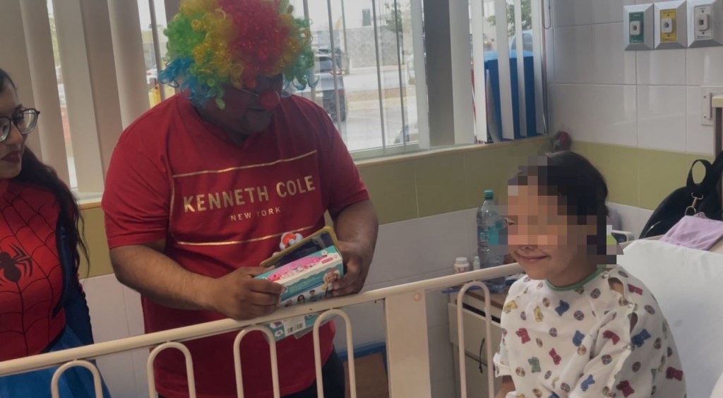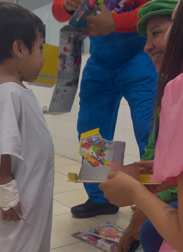 Disfrazados de personajes infantiles, los futuros policías entregaron mensajes de apoyo y obsequios a los menores, logrando generar un ambiente de esperanza durante su visita.
