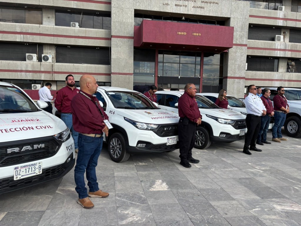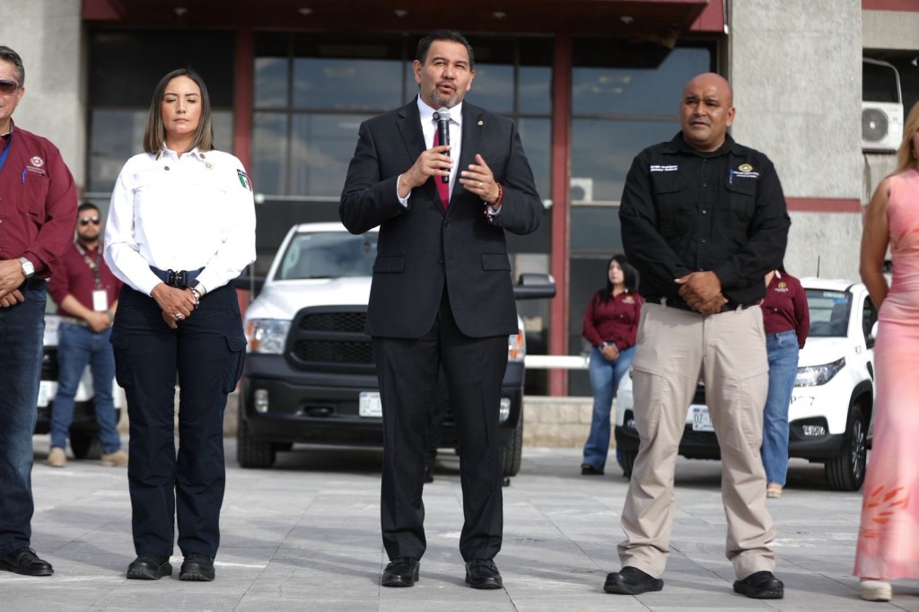 El presidente municipal Cruz Pérez Cuéllar entregó vehículos nuevos a la Dirección General de Protección Civil. Las unidades serán utilizadas en los departamentos de Normatividad, Trámites y Administración de Riesgos.