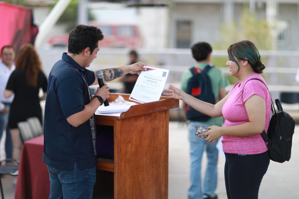 Este miércoles 20 de agosto se entregaron becas del programa Acceso a la Universidad en la Escuela Normal Superior de Chihuahua a estudiantes beneficiados por el Instituto Municipal de la Juventud.