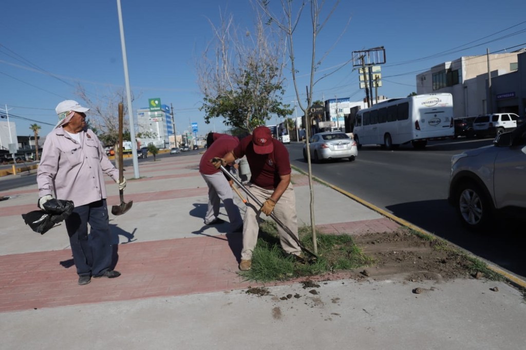 Este miércoles fueron plantados 50 árboles en coordinación con el diputado federal Alejandro Pérez Cuéllar. Las labores se realizaron en el camellón central, desde Adolfo López Mateos hasta casi llegar a la Valentín Fuentes.