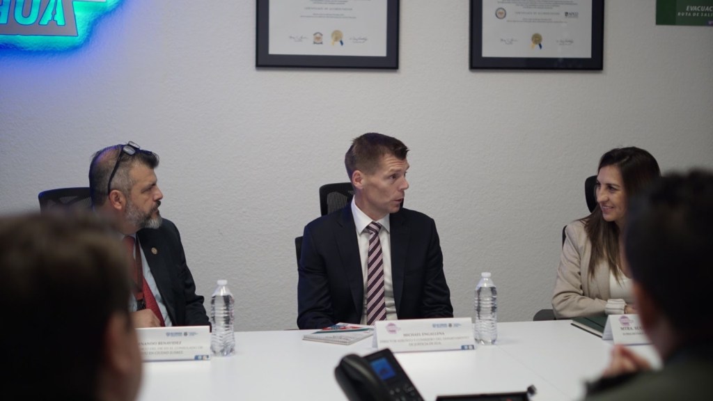 El secretario de Seguridad Pública del Estado, Gilberto Loya Chávez, sostuvo una reunión con representantes del Departamento de Justicia de Estados Unidos y el FBI para fortalecer la cooperación en temas de seguridad binacional.