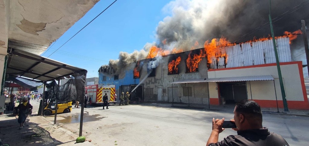 El Heroico Cuerpo de Bomberos atiende un incendio registrado en una bodega ubicada en el cruce de Santos Degollado y Ramón Rayón, en Ciudad Juárez.