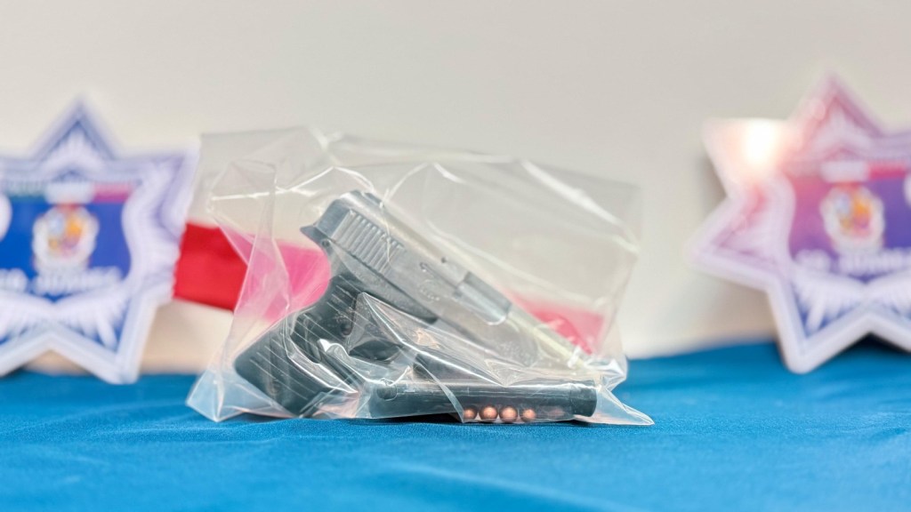 El detenido fue identificado como René R. C., de 50 años, a quien le aseguraron una pistola calibre .380 con un cargador y cuatro cartuchos útiles, localizada en su cintura.