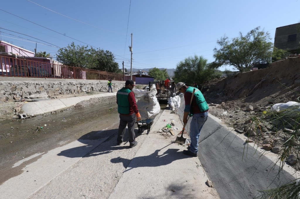 El personal de la Dirección de Limpia retiró más de 800 toneladas de azolve en la colonia Franja Sara Lugo, ubicada en el norponiente, tras las lluvias recientes en Ciudad Juárez.